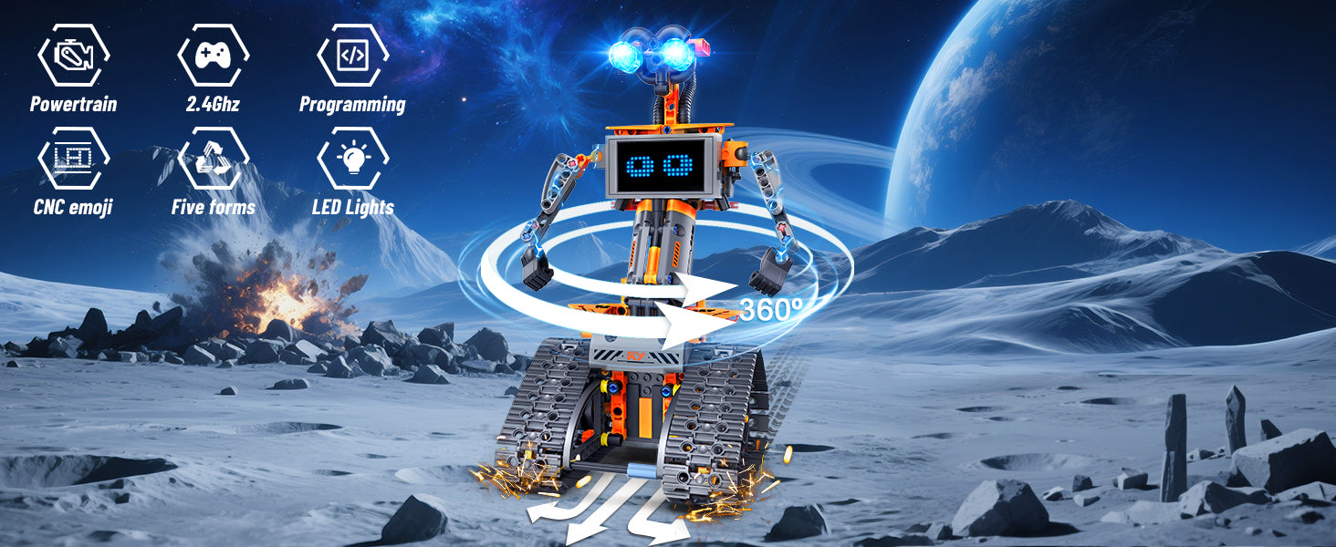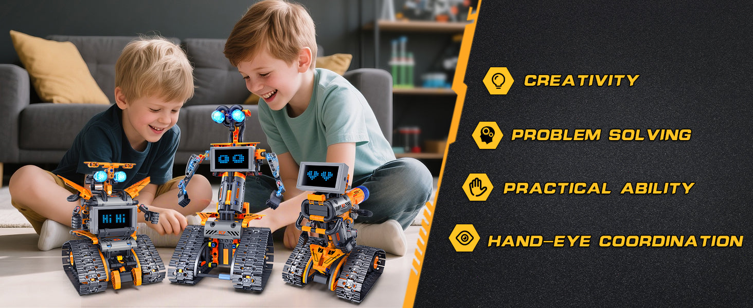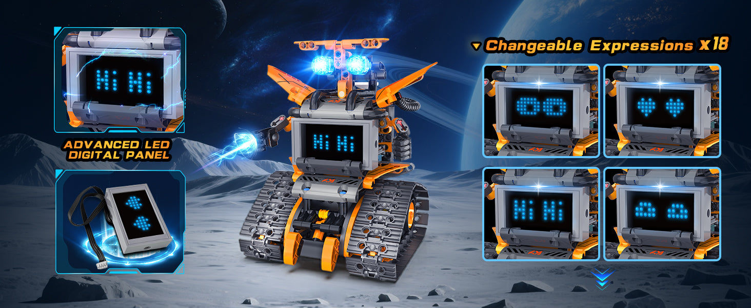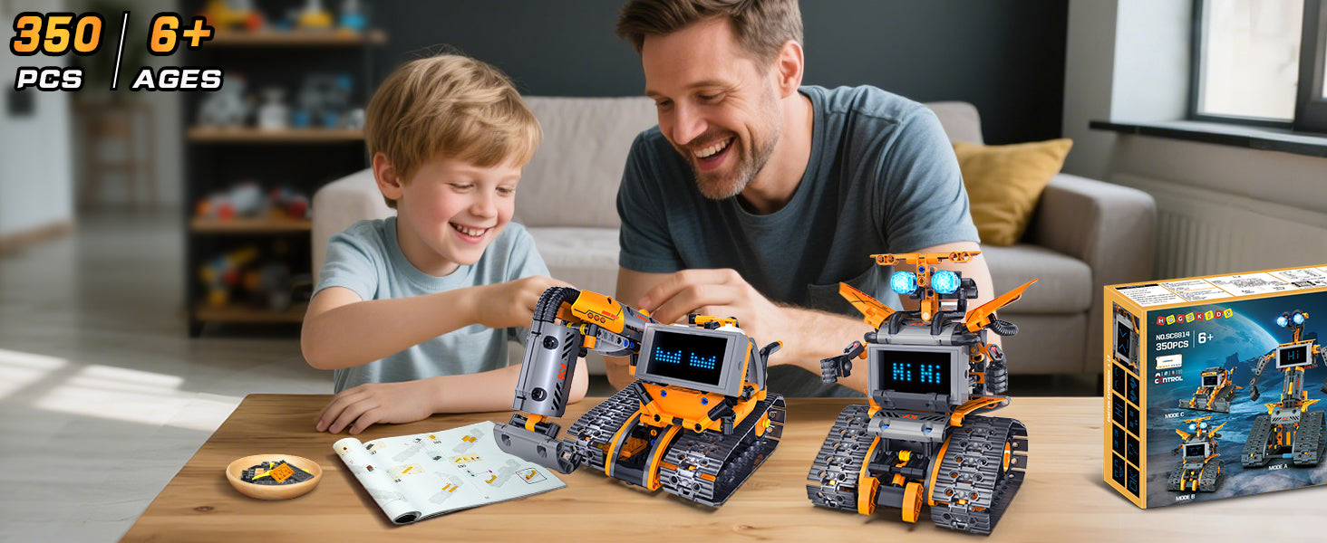 Bauen Sie eines von fünf Modellen: Tech-Roboter, Wandroboter, Ingenieurroboter, Bagger oder Bulldozer. Fördert die Kreativität und die praktischen Fähigkeiten von Kindern von 8 bis 14 Jahren.
