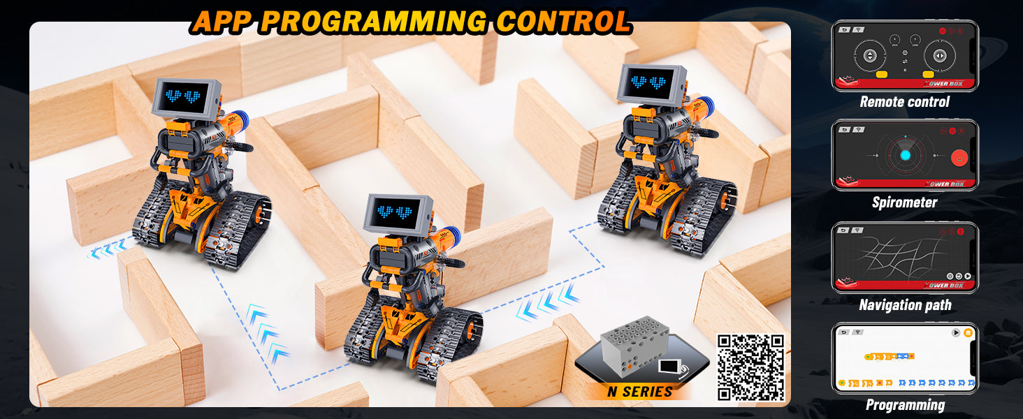 Doppelte Steuerung: Steuerung über 2,4-GHz-Fernbedienung oder App. Genießen Sie Funktionen wie Programmierung, Pfadmodus, Gyromodus und 360°-Drehungen für endlosen interaktiven Spaß.