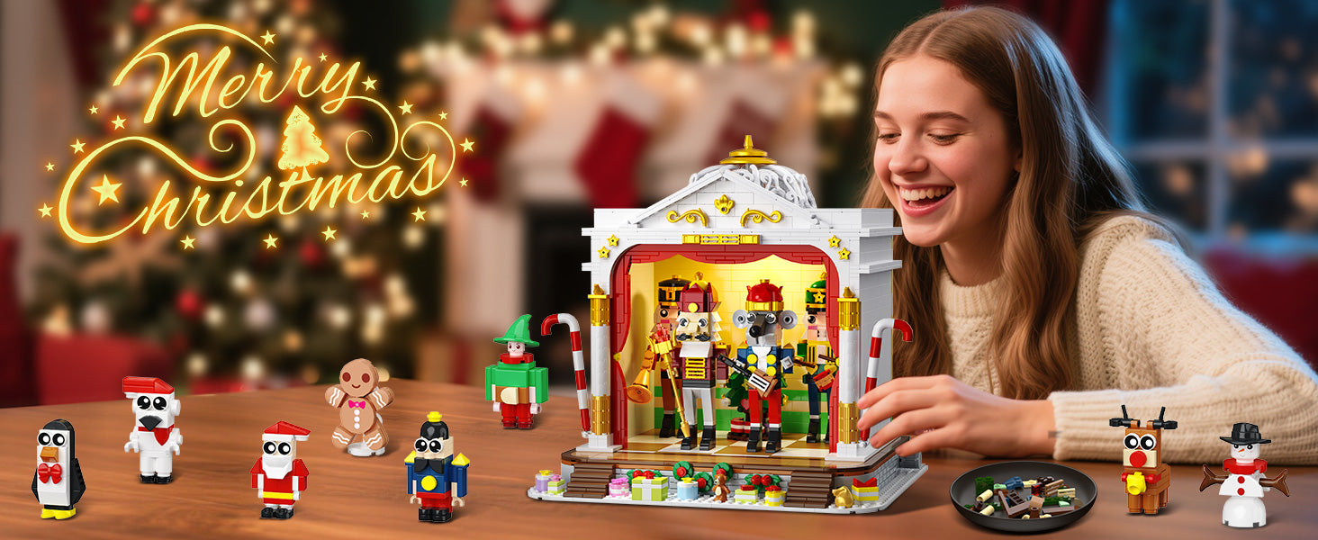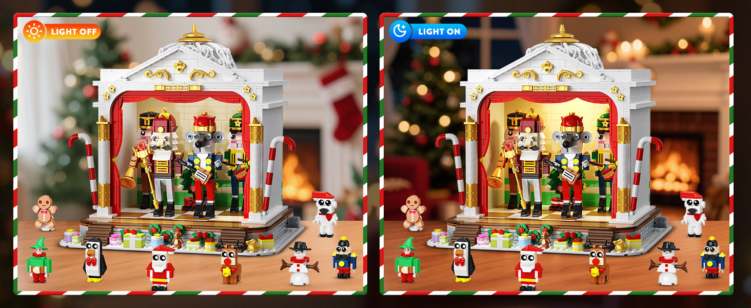 Das Weihnachts-Bauset verfügt über ein integriertes LED-Beleuchtungsdesign, das die Bühne in ein warmes, magisches Licht taucht und das Theater zum Leben erweckt. Sobald die Lichter eingeschaltet sind, erstrahlt das gesamte Set in festlichem Glanz und verbreitet eine intensive Weihnachtsstimmung.