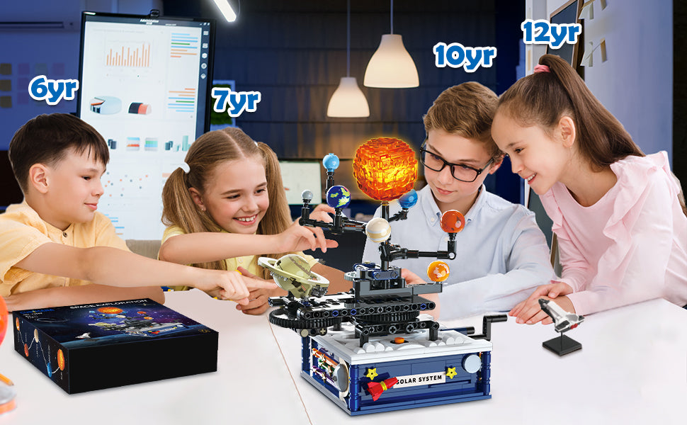 Kinder sind oft neugierig auf das Universum und die Wissenschaft. Durch die Simulation der Bewegung der Planeten im realen Sonnensystem hilft dieses Bauset für das Sonnensystem Kindern, das echte magische Universum zu verstehen und ihre Neugier auf die Wissenschaft zu wecken!